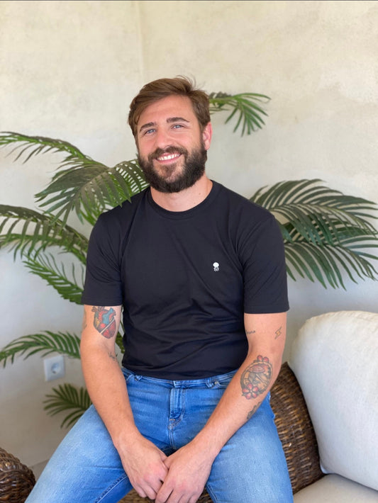CAMISETA NEGRA CON CUELLO REDONDO Y BORDADO MEDUSA
