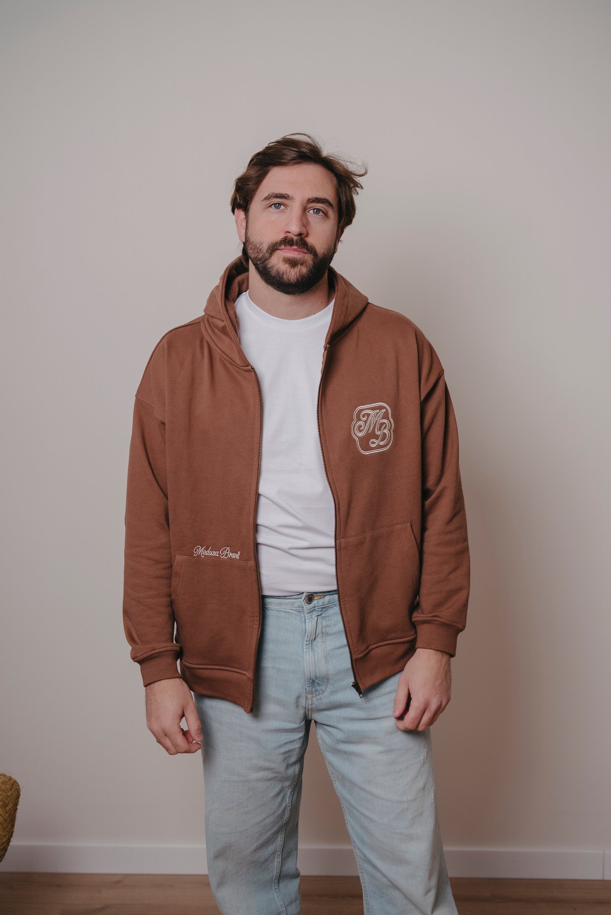 ZIPPER HOODIE "BORN TO BE AWESOME" BROWN
